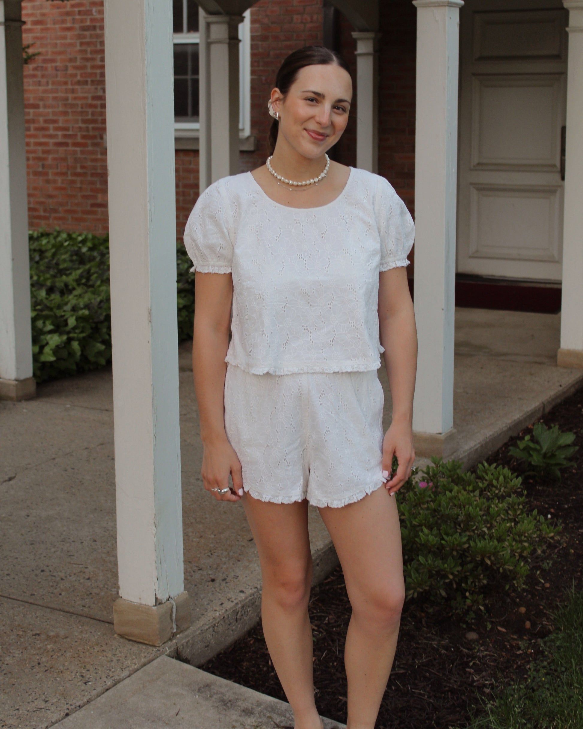 Elevate your wardrobe with the Eloise Eyelet Puff Sleeve Top. Featuring delicate eyelet detailing and a lightweight fabric, this top exudes femininity and effortless style. Perfect for any occasion, it is sure to become a versatile and elegant staple in your wardrobe.